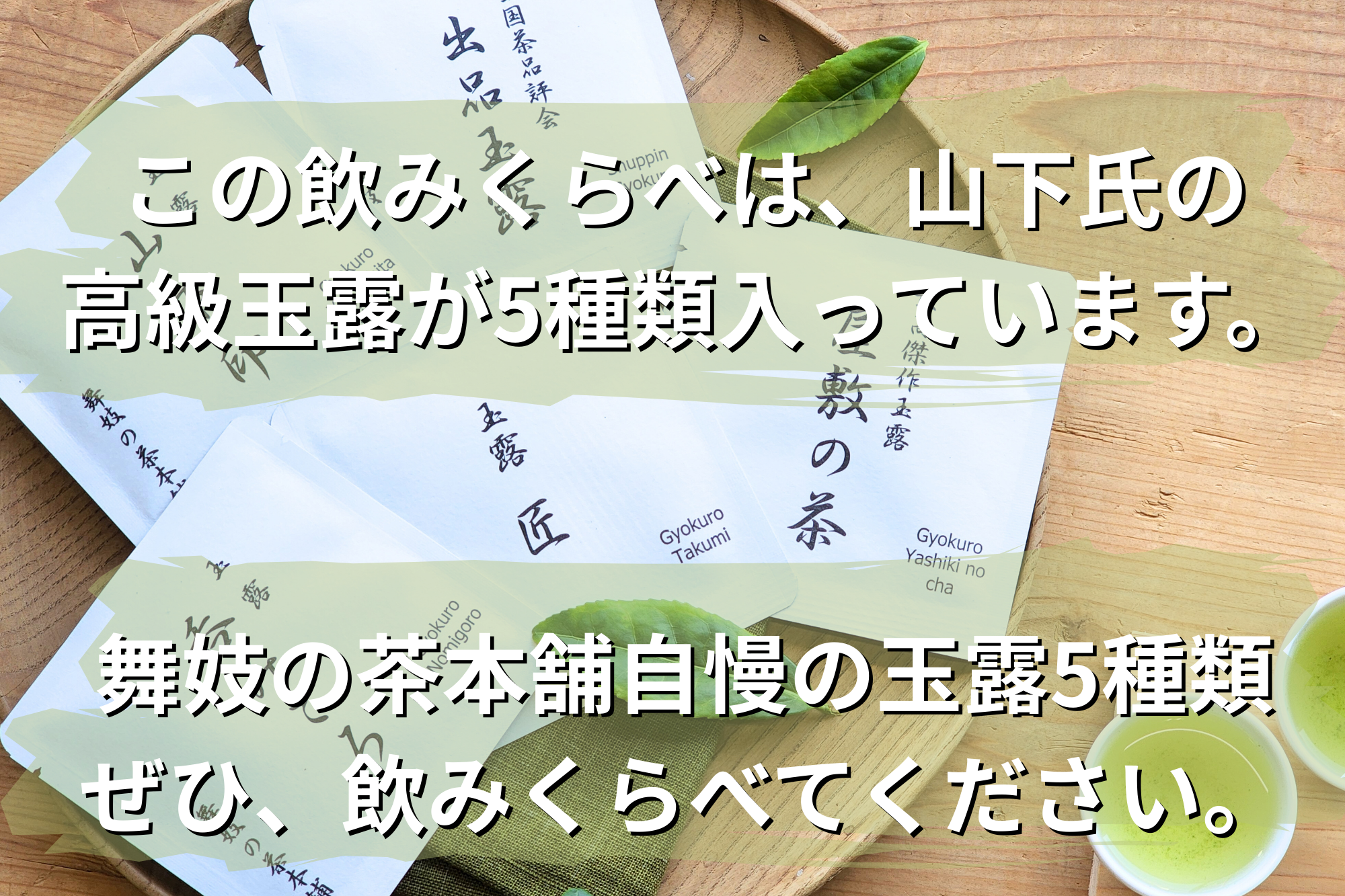 この飲みくらべは、山下氏の高級玉露が5種類入っています。
